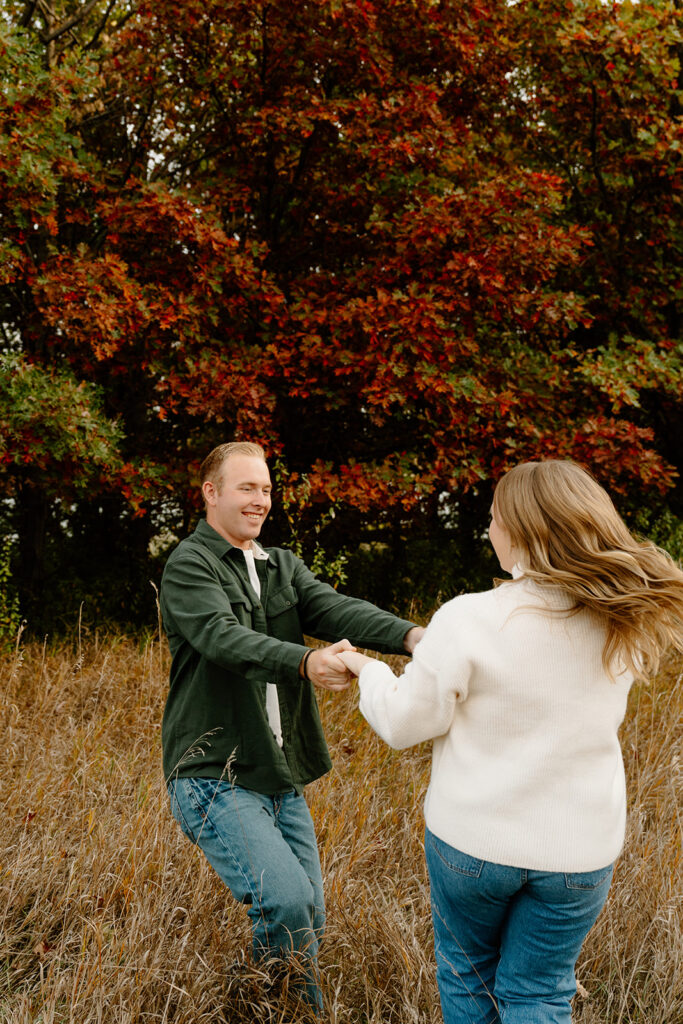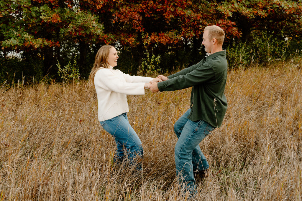 Overall, this session was a perfect reflection of who they are. Genuine. Joyful. Unafraid to be silly and present in the moment. From the very first frame to the last, their energy never faded. They were completely at ease with one another, and it made for such a beautiful session. It’s an absolute honor to capture love like this! These Omaha field engagement photos at golden hour are a reminder of what really matters—connection, joy, and stories worth remembering.